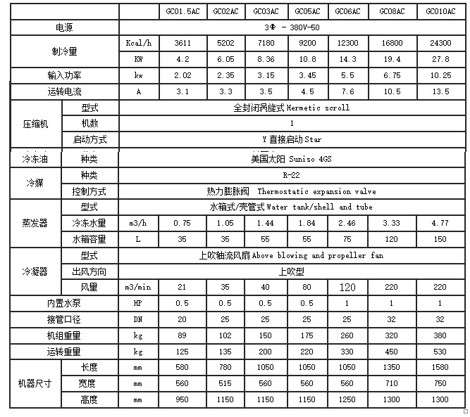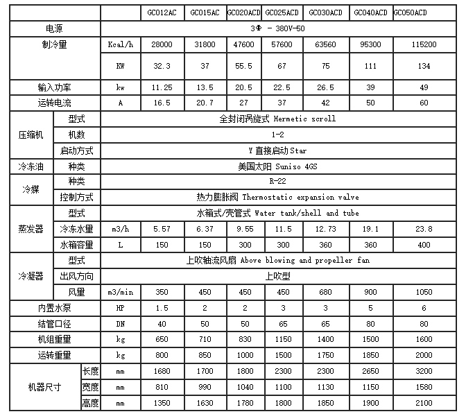 风冷涡旋冷水机参数表