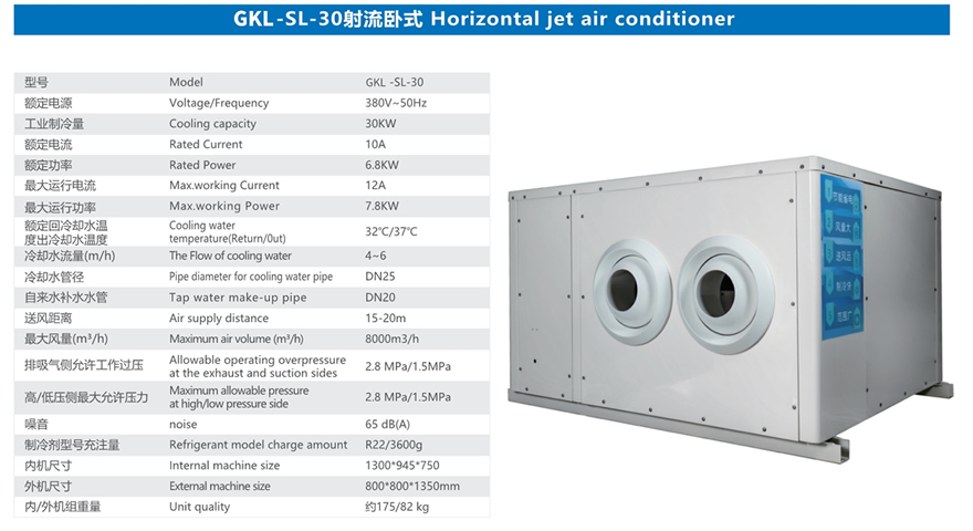 GKL-SL-30射流卧式蒸发冷高效空调机组